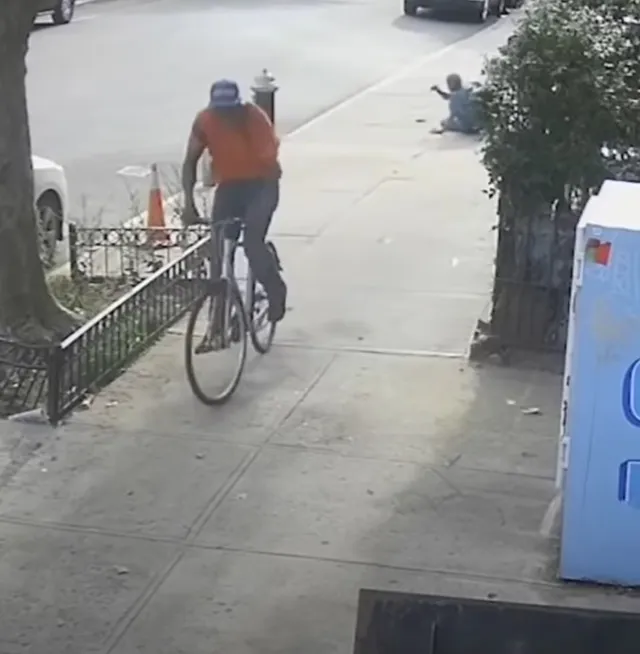 As seen in footage captured by a surveillance digicam, a 60-year-old lady in a blue shirt was strolling down Hancock Road at roughly 5 pm when a person, later recognized by New York Police Division as Daniel Biggs, approached her whereas using a bicycle from the other way, the Every day Mail reported.