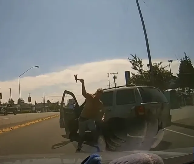 After smashing the axe towards the lady’s windshield, the motive force of the Jeep returned to his automobile, drove over the median, and fled in the wrong way, however he wouldn’t get far. King County deputies responded to studies of a street rage suspect, and authorities have been finally in a position to establish the motive force of the Jeep from further surveillance video.