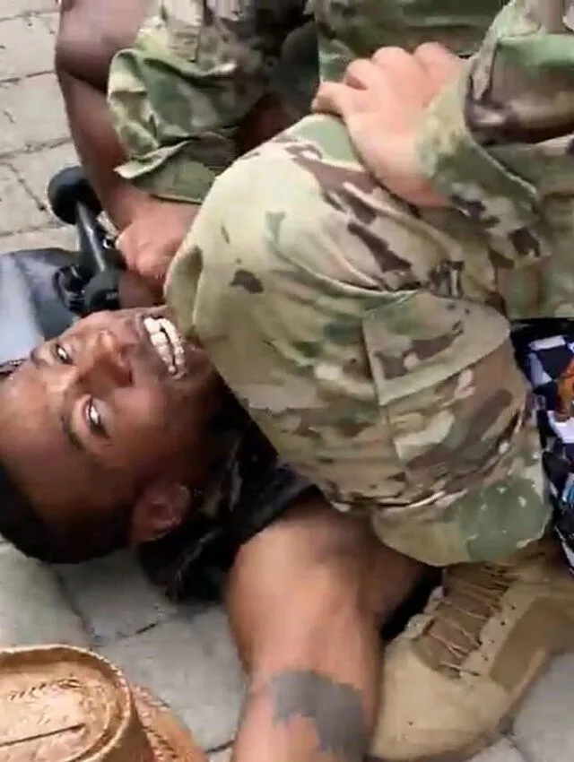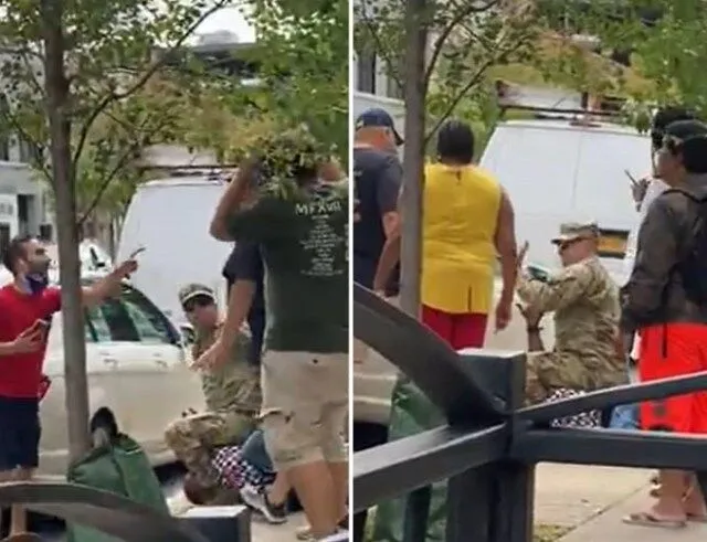“Are you hitting individuals? Are you hitting our individuals?” asks a black man in a wheelchair, who rolled as much as the white man as he restrained the suspect. Holding a baseball bat, he then accuses the person of racism, however the soldier isn’t having it.