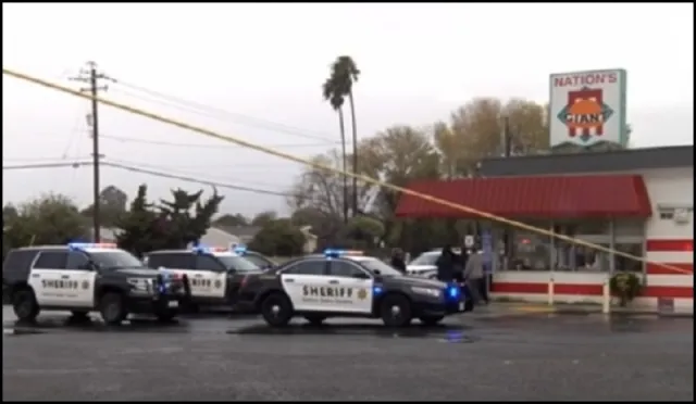 Contra-Costa Sheriff’s Division deputies at Nation’s Burgers following the lethal incident (Credit score: YouTube)