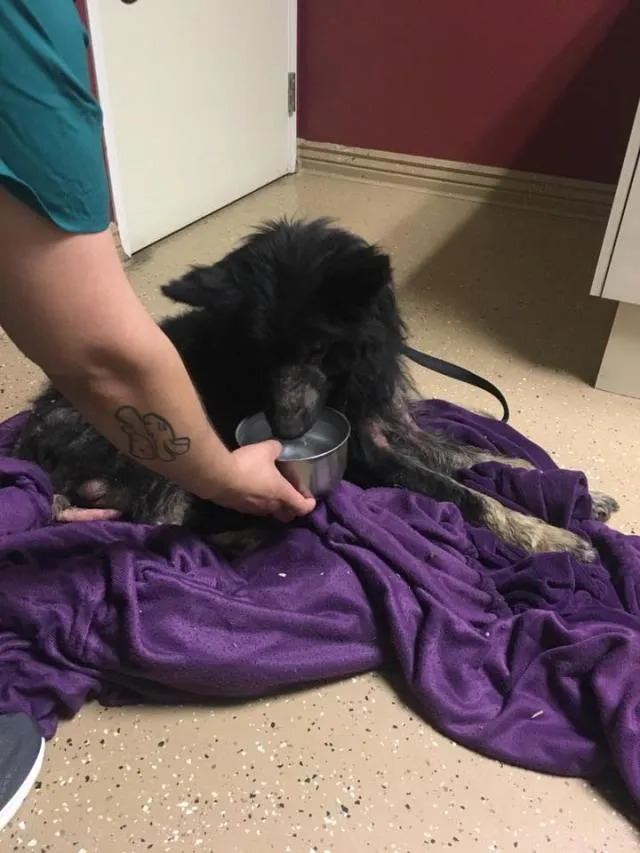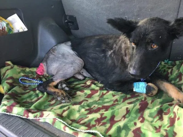 After giving the canine, who she dubbed King, some fast roadside care, he appeared relieved to lastly get assist. So, Megan put a prepared King in her automobile and drove him to an emergency veterinary clinic. There, the veterinarian found a slew of ailments and accidents, together with scabies, a damaged pelvis, and a damaged tail. Shockingly, though he appeared fairly aged, King was only a yr outdated.